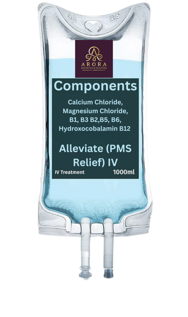 The Alleviate IV Kit delivers a blend of ingredients directly into your bloodstream to address the underlying causes of PMS symptoms. [cite: 1] This method ensures rapid absorption and maximum bioavailability, allowing the ingredients to effectively target and alleviate PMS discomfort. The kit includes Calcium Chloride, Olympia Vita-Complex, Hydroxocobalamin B12, and Magnesium Chloride, each playing a crucial role in managing various PMS symptoms.